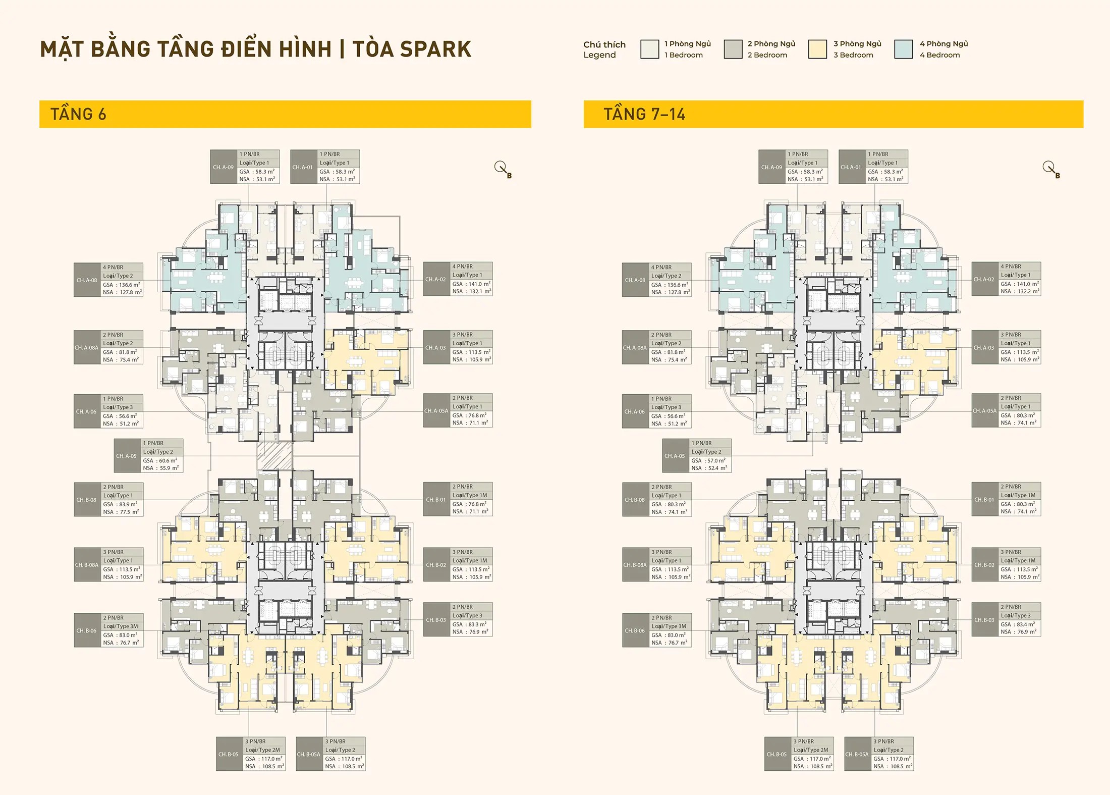 - Căn hộ 4 phòng ngủ: Phù hợp với gia đình đa thế hệ hoặc khách hàng cần không gian sống cao cấp.
